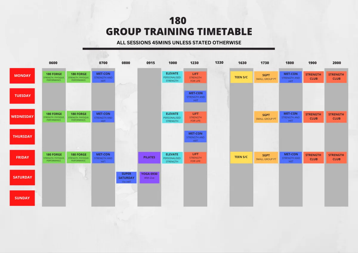 Heart-pumping, fat-burning conditioning. A mix of compound lifts, bodyweight and cardio intervals designed to challenge your endurance and core strength. 60 minutes.